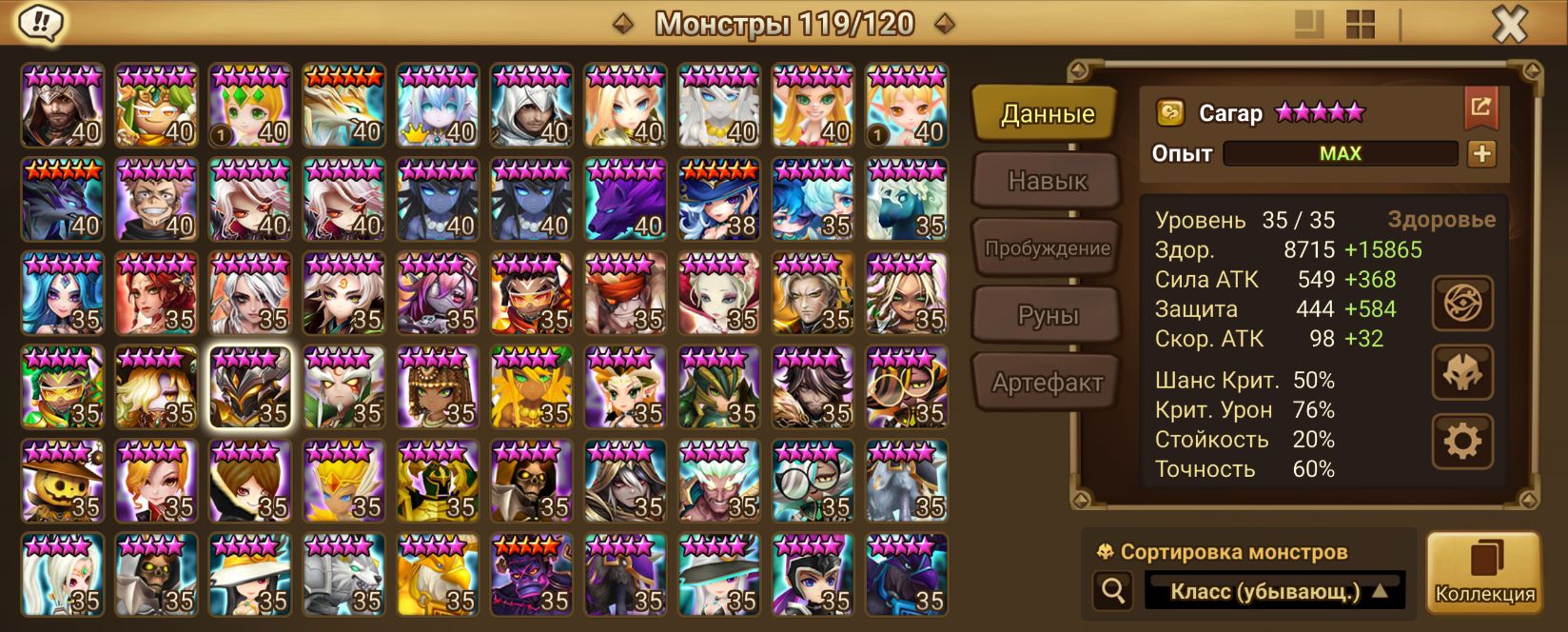 Количество монстров и 6* (указаны в описании)