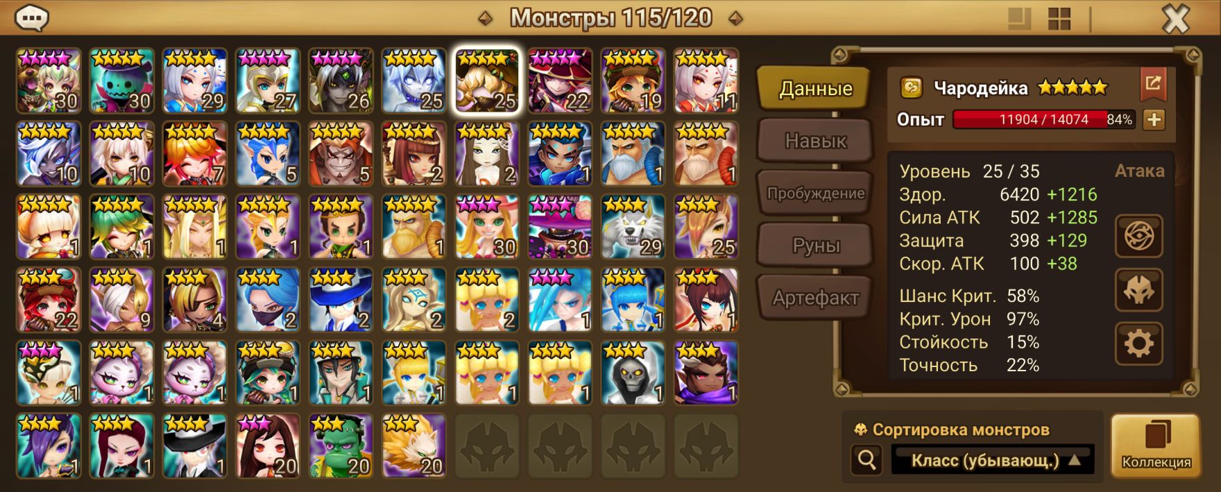 Количество монстров и 6* (указаны в описании)