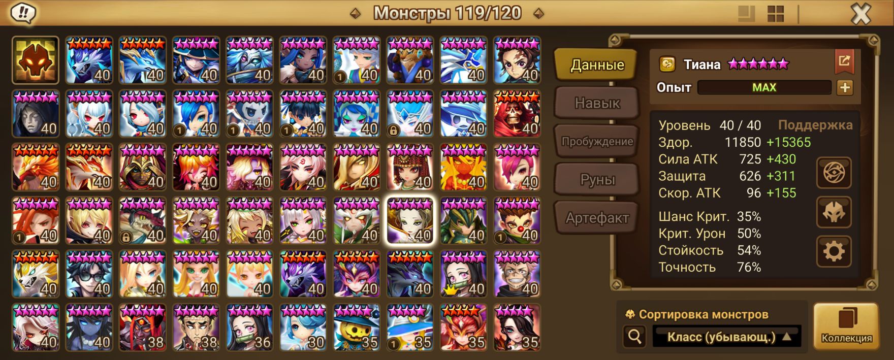 Количество монстров и 6* (указаны в описании)