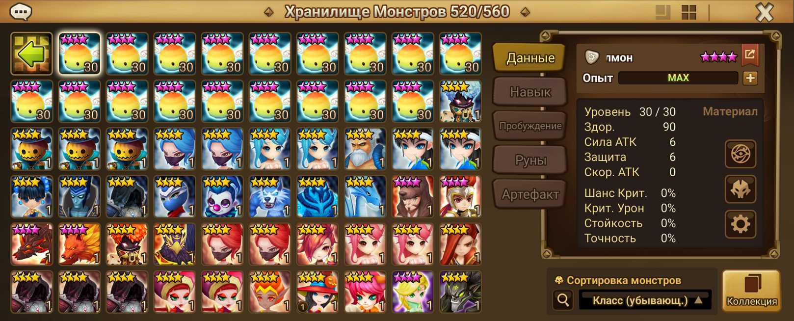 Количество монстров и 6* (указаны в описании)