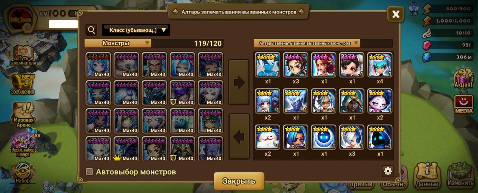Количество монстров и 6* (указаны в описании)