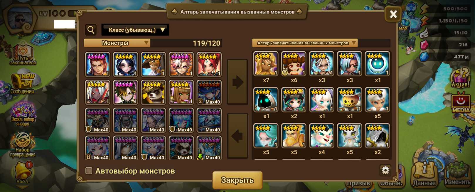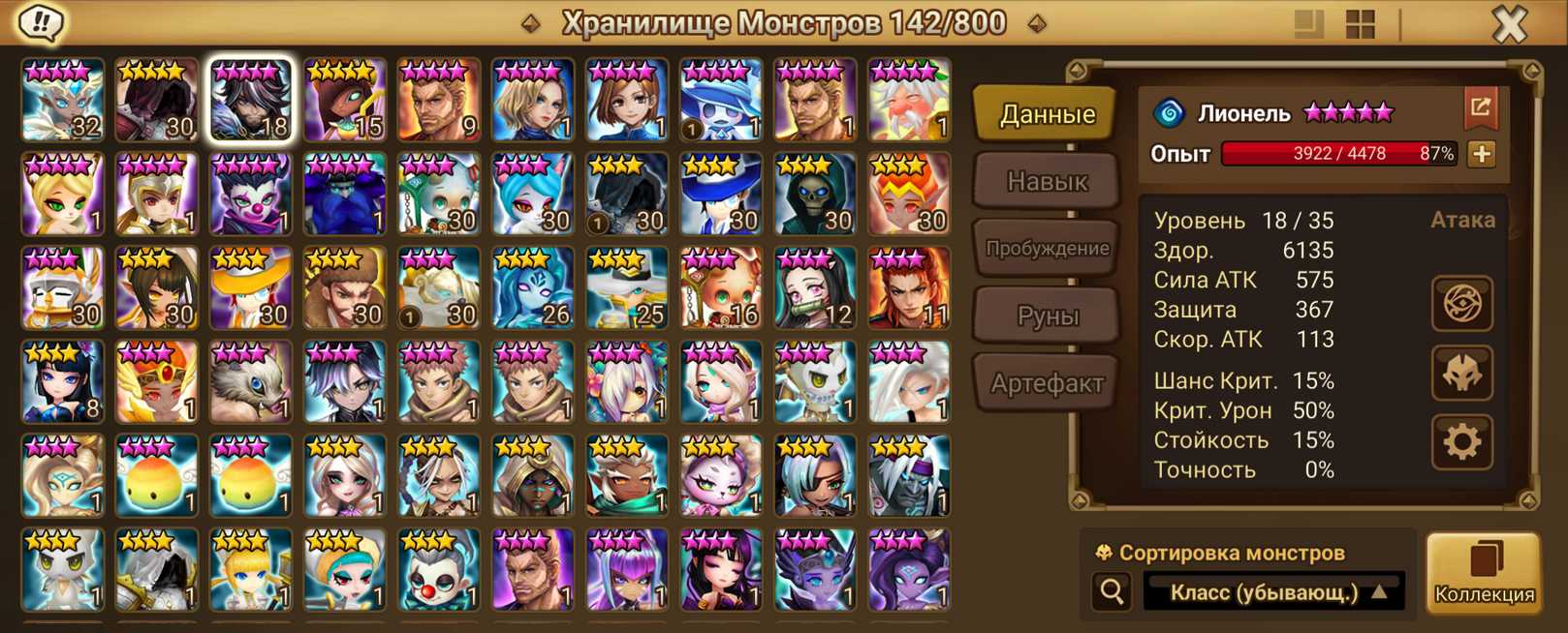 Количество монстров и 6* (указаны в описании)