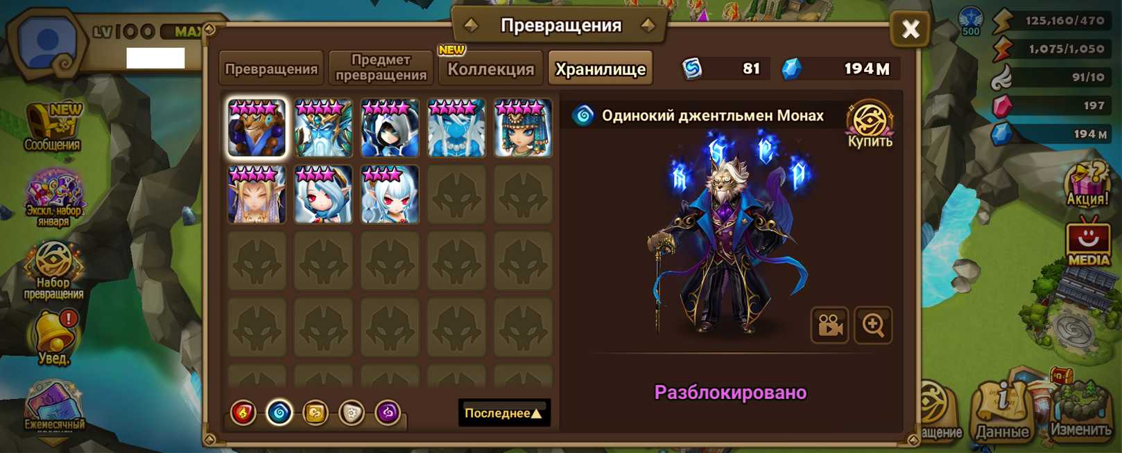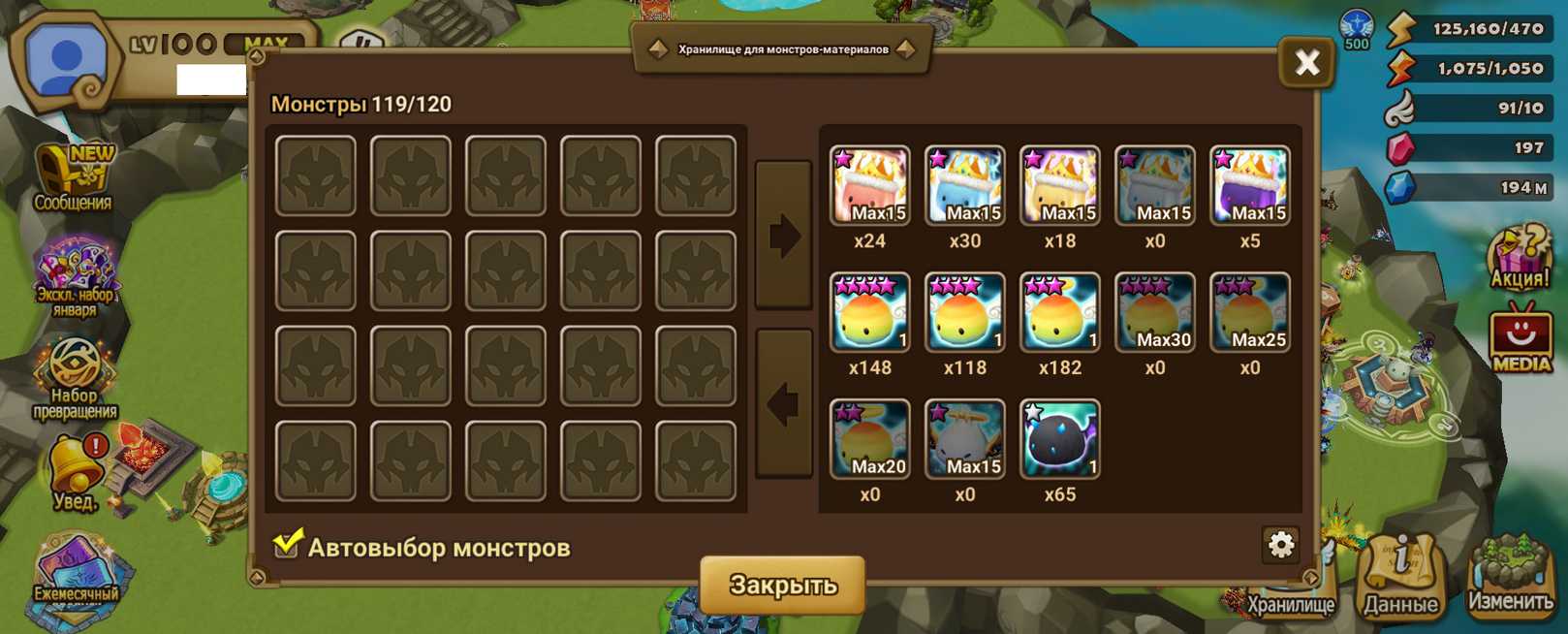 Количество монстров и 6* (указаны в описании)