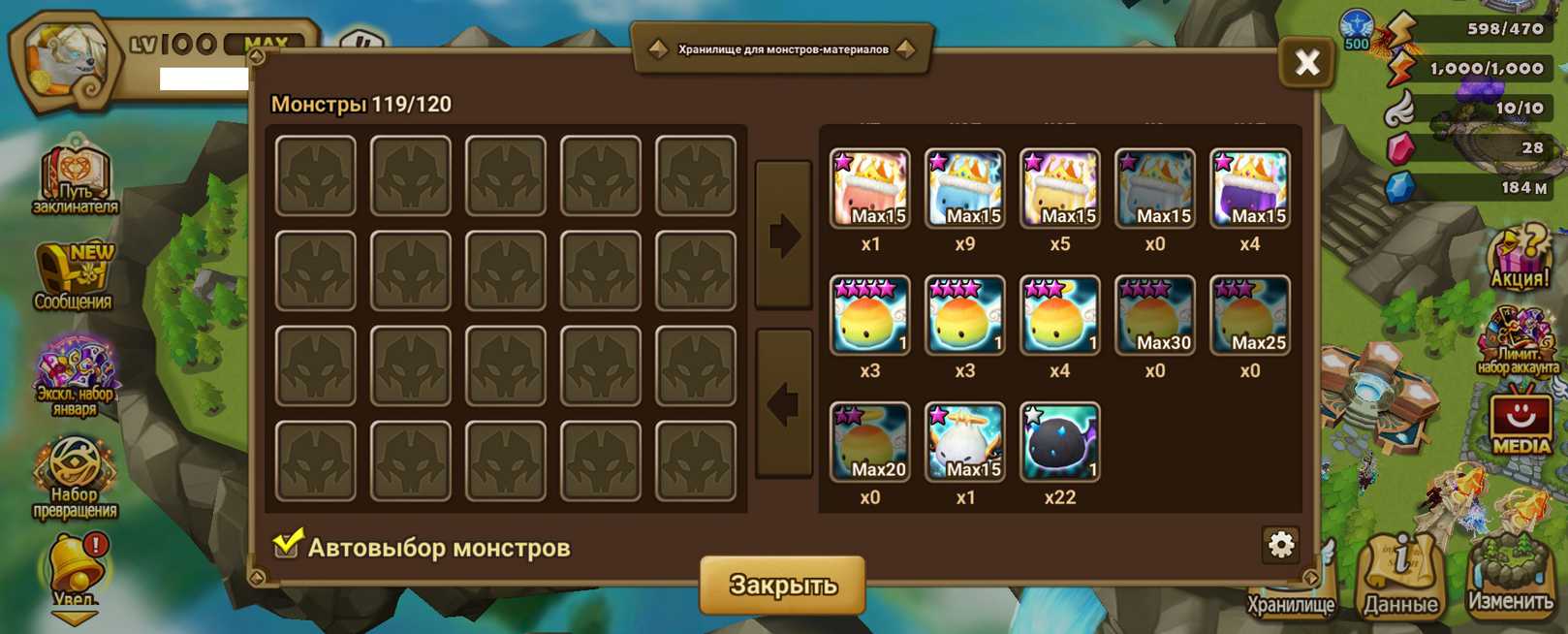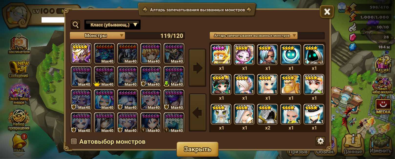 Количество монстров и 6* (указаны в описании)