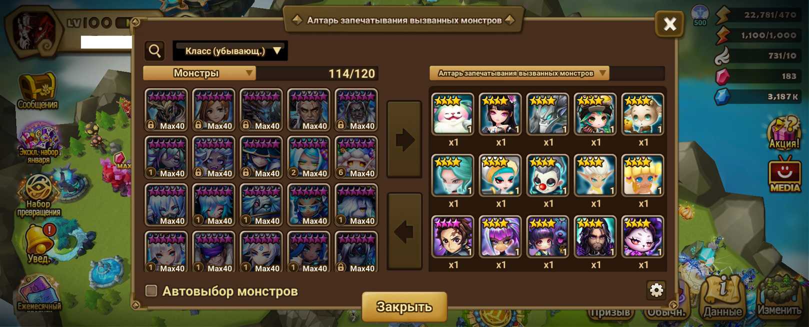 Количество монстров и 6* (указаны в описании)