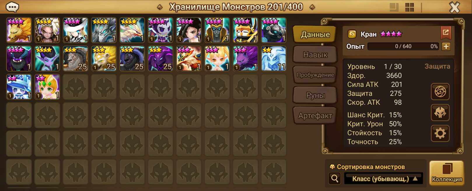 Количество монстров и 6* (указаны в описании)