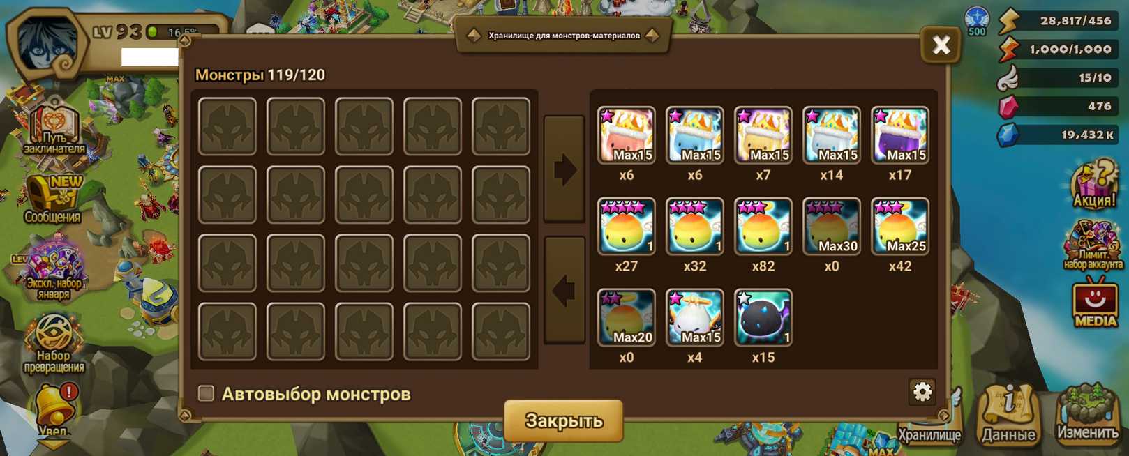 Количество монстров и 6* (указаны в описании)