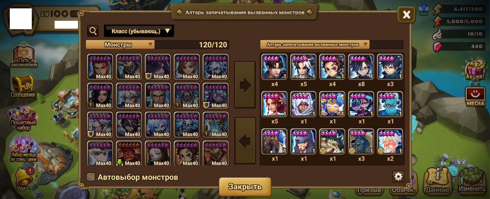 Количество монстров и 6* (указаны в описании)
